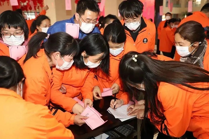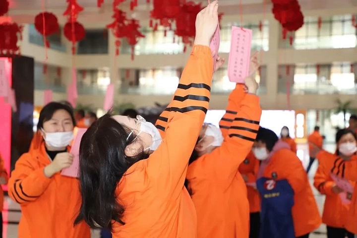一條條涵蓋歷史、自然、生活等趣味十足的燈謎,引起職工們的極大興趣,紛紛領(lǐng)謎面猜謎底,不時(shí)傳來陣陣歡笑聲。